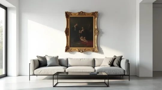 Die gelungene Integration eines klassischen Ölgemäldes in ein minimalistisches Interieur ist kein Akt der Dekoration, sondern ein bewusster kuratorischer Eingriff….