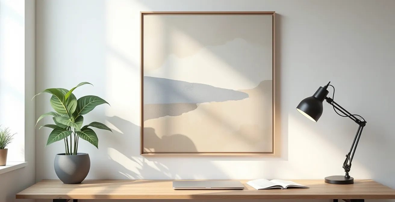 - Motiv abstimmen: Wählen Sie neutrale, monochrome oder klar strukturierte Kunstwerke, um eine seriöse und unaufdringliche Wirkung zu erzielen.