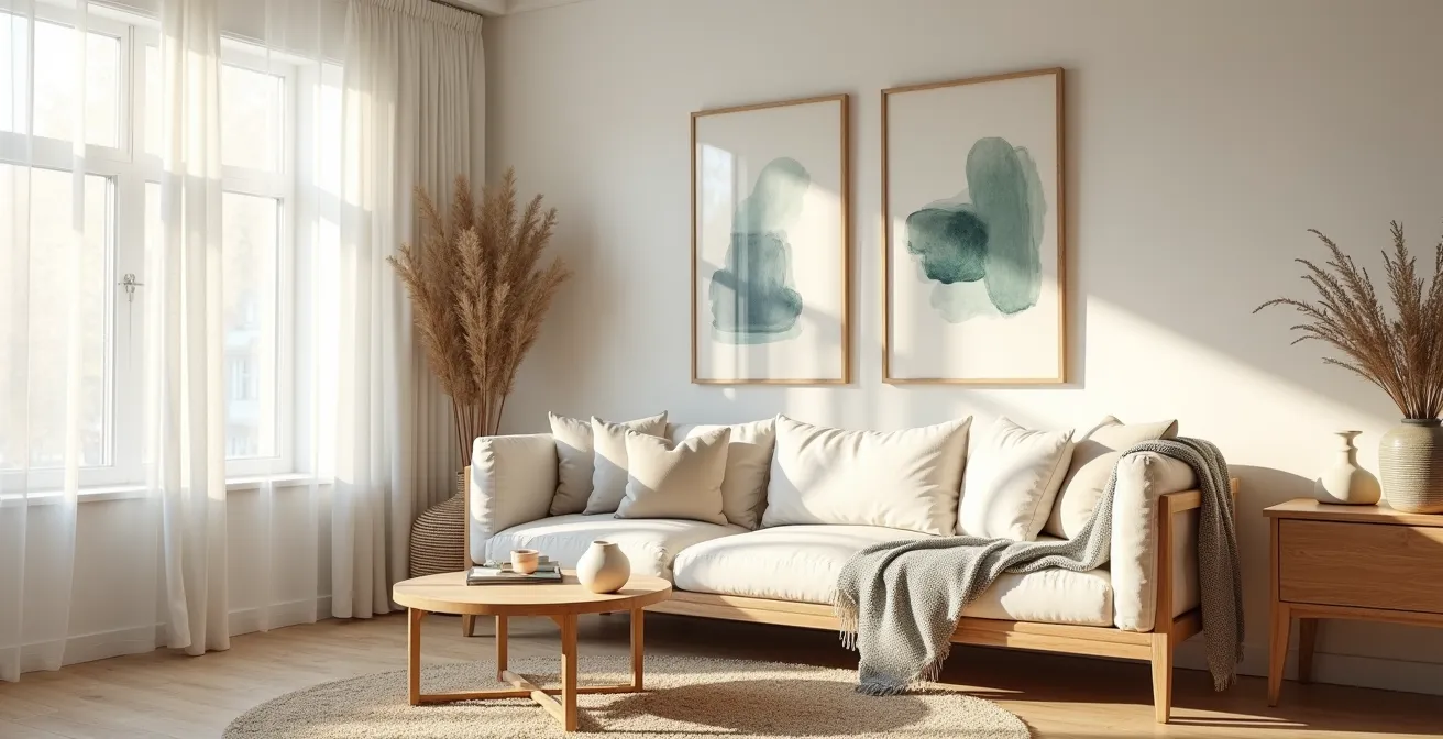 Die Sehnsucht nach einem Zuhause, das Geborgenheit, Ruhe und eine Verbindung zur Natur ausstrahlt, ist das Herzstück des Hygge-Gefühls. In diesem Streben nach skandinavischer Gemütlichkeit spielen Aquarelle eine besondere Rolle. Mit ihren sanften Farbverläufen und der Fähigkeit, Licht einzufangen, scheinen sie wie geschaffen, um eine Atmosphäre von Leichtigkeit und Natürlichkeit zu schaffen. Doch genau hier liegt auch eine feine Linie: Wie integriert man diese zarten Kunstwerke, ohne dass der Gesamteindruck unbeabsichtigt ins Liebliche oder gar Kitschige abdriftet? Viele greifen zu einfachen Naturmotiven in hellen Holzrahmen – eine bewährte, aber oft oberflächliche Lösung.