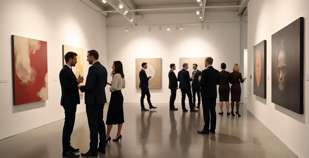 Die wirklich wertvollen Kontakte werden oft nicht bei der öffentlichen Vernissage geknüpft, sondern bei den exklusiven Pre-Openings oder Sammler-Dinners. Hier treffen sich die Gatekeeper der Szene: einflussreiche Sammler, Kuratoren und die Galeristen selbst. Auf diese Gästelisten zu kommen, ist der entscheidende Schritt, um vom passiven Beobachter zum aktiven Teilnehmer zu werden. Dies erfordert eine proaktive Strategie, die über das reine Besuchen von Ausstellungen hinausgeht.
